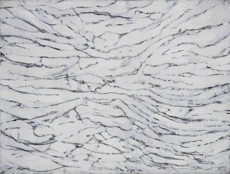 À partir de la fin des années 1990, il laisse plus de place au vide, à la lumière, à des signes mystérieux plutôt qu’à des formes reconnaissables. Les paysages se fissurent, se déforment, se remplissent de traits noirs appliqués, de courbes, de droites, de coulées et de rondeurs répétitives. Ce sont les oeuvres de cette dernière période, peu ou pas encore exposées, qui sont réunies à l’Espace 001.